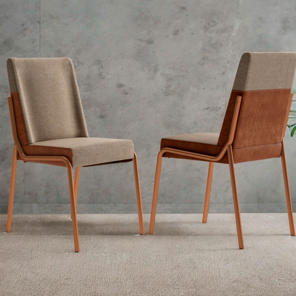 CJ 02 CADEIRAS CARRARO HUG 1749 COURINO CARAMELO/AREIA C/ TUBO ROSE