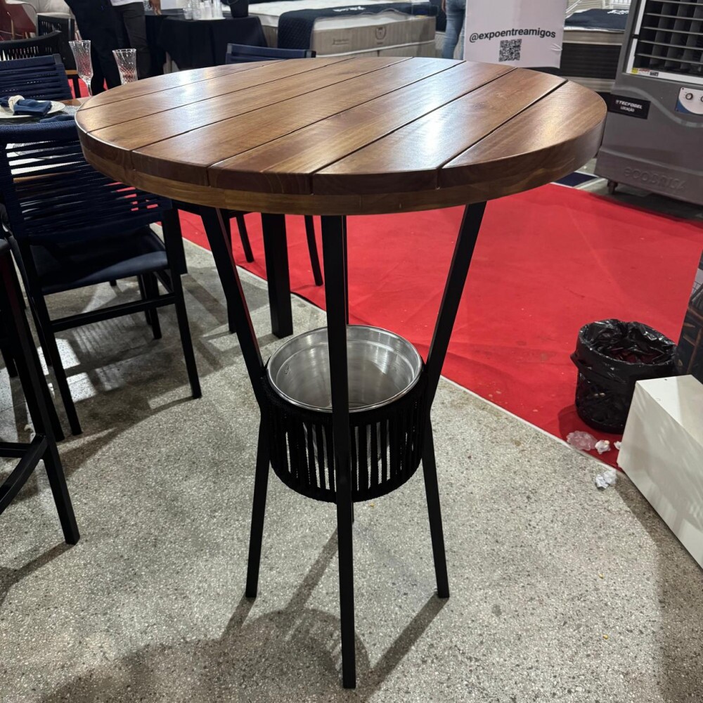 A Mesa Bistrô Bar combina praticidade e estilo para compor varandas, áreas gourmet ou espaços de lazer. Conta com tampo redondo em madeira maciça, estrutura em aço e acabamento de design moderno, que proporcionam resistência e durabilidade. Possui compartimento embutido para gelo, que ajuda a manter as bebidas na temperatura adequada durante o uso. Compacta e funcional, se adapta a diferentes tipos de ambiente, unindo elegância e praticidade.